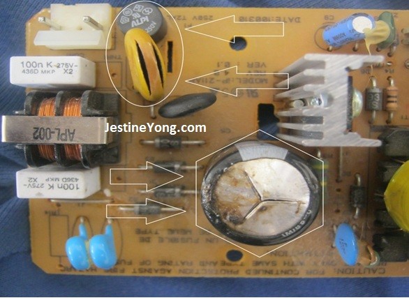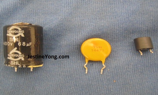 As you can see, the main capacitor, the fuse, and the varistor were all blown.