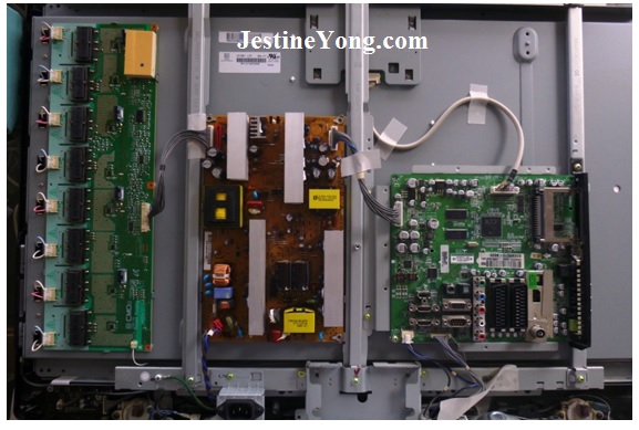 I have revisited this article after a long time since you put your comment. Although it seems meaningless now, after so long time, perhaps there is still a chance of survival of that set of yours (if not thrown away). I think that the problem is in one or more dried electrolytic capacitors. So do a thorough ESR testing of all of these, especially in the power supply and the inverters pcb for the back light of the screen. I hope that it is not too late for that set.