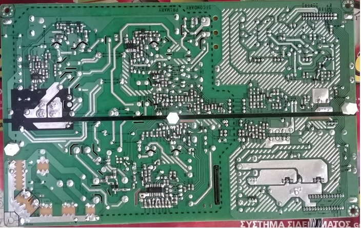 I called a friend of mine who owns a repairs’ lab far away from Athens and works officially as an LG service center and asked him if he had something in his mind about this failure. His answer was even more disappointing:“I know that there is no schematic in there” he said. “I am also working without schematics”. And how do you manage the repairs I asked him. The answer was of course as expected…”Don’t bother yourself by performing component level troubleshooting. Replace the PSU. It costs 75€”. Then we stopped the discussion there.