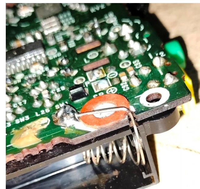 Then removed the corroded spring and replaced it with another suitable one, extending its one end to solder directly on to the PCB.