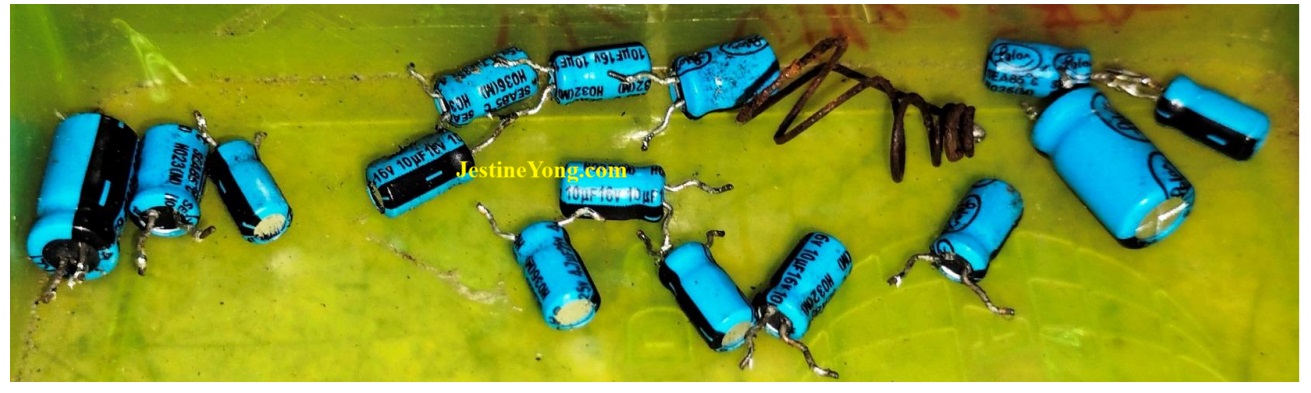 Replacing the caps were very difficult, as the solder joints were found hardened like cast iron. I had to apply solder and flux before the legs got free. So, I could not carry out retouching of the entire board. If I had tried to do that, it would have taken many hours of work and stood a chance of damaging the tracks and PCB due to excessive heat applied.