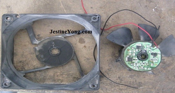 Once I repaired the AC cable and the plug, I connected to the electrical socket and the machine came on. One thing did not sound right. I did not hear the fan kicking in.  Once I checked the fan, this is what I found.