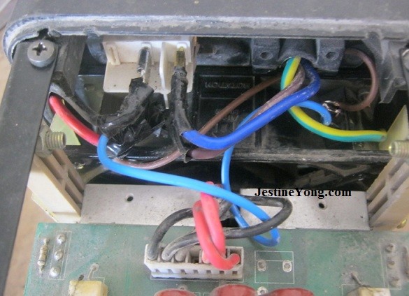 The customer, who brought this machine to be fixed, told me that it only needs a fan. I knew better than that because I saw this. As you can see in the photo, the electrical plug was really bad and that what caused the short in the machine. I was hoping that this short did not cause any further damage in the machine itself.