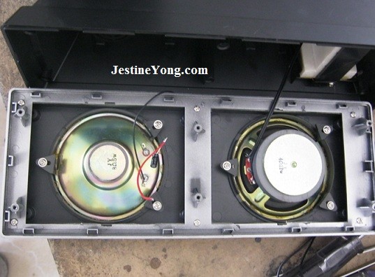 The main problem with this CD player was no sound coming out. I connected the speakers to it, put a music CD in and it started to spin but just like the guy said there was no sound coming out. I turned the volume all the way up and I could hear faint sound coming out but very low. Faint sound means sound IC is in good working condition. Tried to wiggle the wires but problem remained.