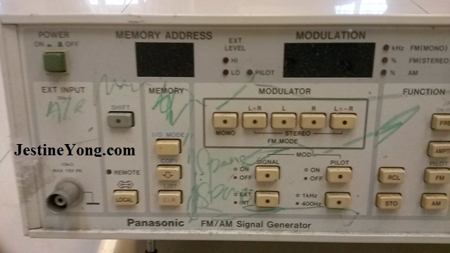 The other day I met on old friend at his shop. While chatting half way he asked me if I would like to have a equipment or not. I was puzzled as what sort of equipment that he wanted to give me. He led me to his room and pulled out the Panasonic AM/FM signal generator under the rack. He told me the equipment was given by his friend and still in working condition. Here are the photos:
