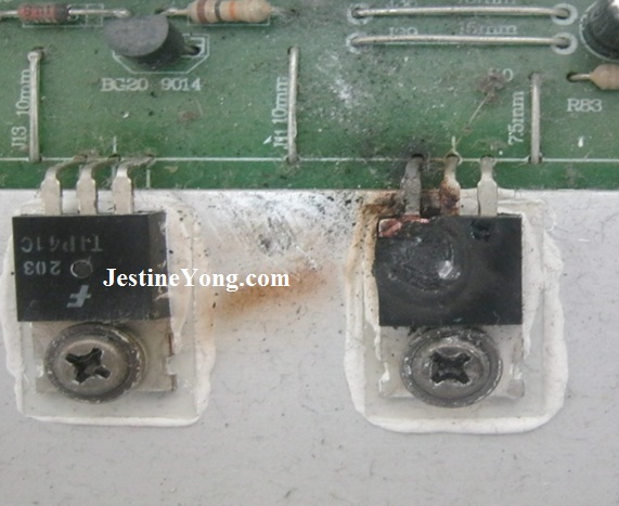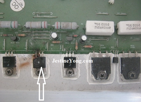 That was an obvious sign of some bad transistors. The first thing that came to my mind was what part number is that blown transistor?