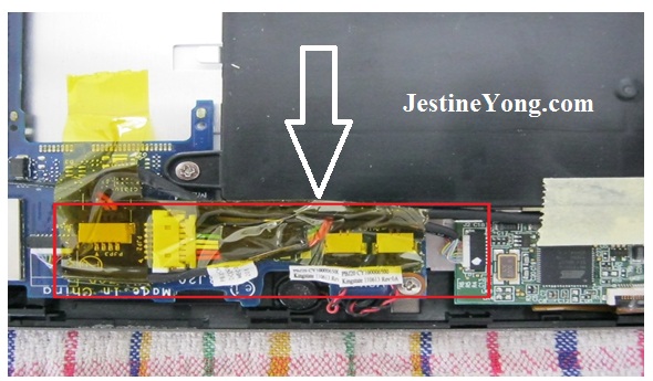 As you can see, it is tiny and it goes into a very crowded area. It has three pins for power control and two pin to hold it on board. It was not easy to do but I managed to solder it back on board using a fine point soldering head. The main problem, I could not fit exactly on the same location on board. It was slightly off but it was working fine. The moment I tried to put it back; it did not fit because the switch was too close to the plastic part that pushes on the power button. I had to file that plastic side off so it will fit on. After a careful filing of the plastic tip of the plastic part, I was able to fit it on perfectly. I put everything back and powered up the tablet, this came on.