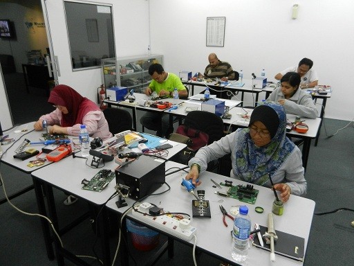 Just completed another Advanced Electronics Repair Course for 6 participants. It was attended by 2 lecturers from Brunei Sultan Bolkiah Technical College, one from India (she took the basic course last week), and 3 locals. Here are the photos taken during the 3 days course.