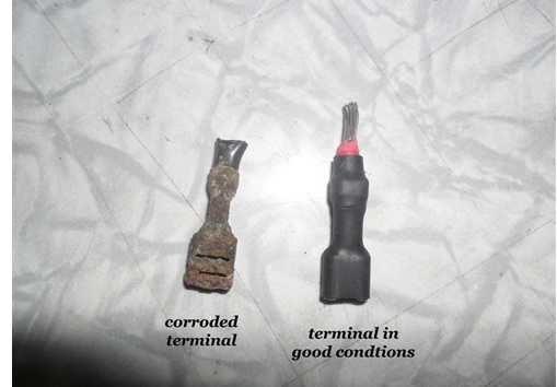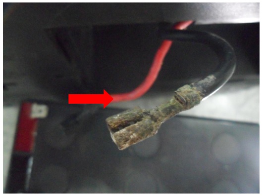 The negative terminal was fully corroded, and this situation is synonym of false contact (this situation produces overheating);