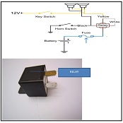 First, I tested the Horn, I connected the connector of horn directly with two wires to the poles of the battery of the car. A very loud voice indicate that the horn was good.