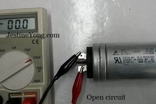 He said the capacitor (Compressor Motor Starting Capacitor) did not show any sign of kicking (charging/discharging) when tested it with his Sanwa analogue meter. He fixed in the new capacitor and asked me to turn On the air-cond.