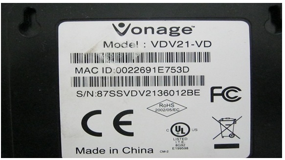 A calling device not recognizing modem repaired. Model: Vonage VDV21.VD