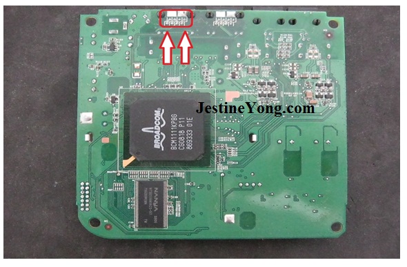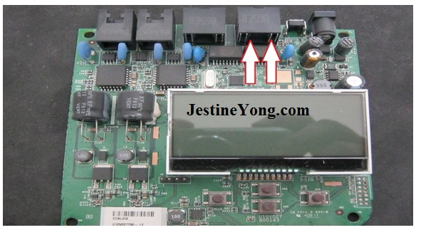 This is the main board. This is the socket that connected to the modem. After I re soldered the pins of this socket, I cleaned the pins inside of it and it was found to be very dirty. It was shiny again and now I was ready to test it again.