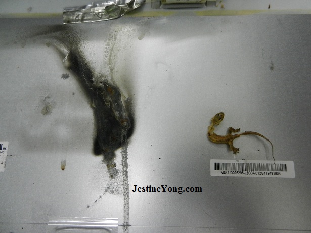 I was wondering how these two lizards managed to go into the power board. After I had closed the Monitor I could see there was a small gap at the right side of the back cover and this is the reason why both the lizards could entered.