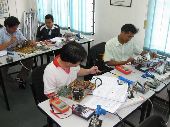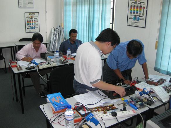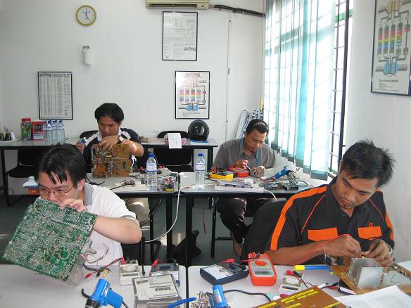 I have just completed another basic electronics course for 4 participants. All of them from computer firms and two of them will be taking the Basic Monitor Repair course by next week. Here are the photos taken during the 3 day course: