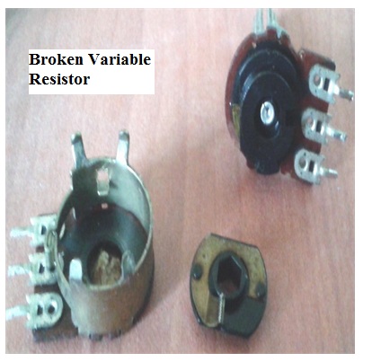 After visual inspection on the loosen parts, I found there was nothing wrong with the variable resistor and I reassembled it.