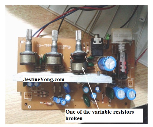 Once the cover was removed I found one of the variable resistors (potentiometer) was broken.