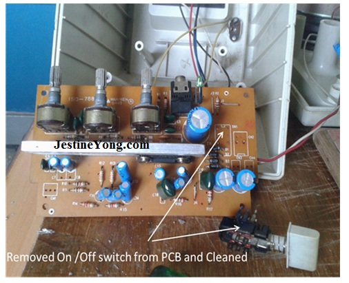 After installing back the variable resistor I removed the “On / Off “switch and cleaned it with Contact Cleaner and resoldered the joints.