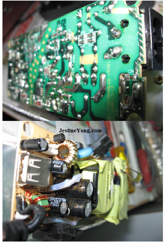 But therefore I give this report in the meanwhile to show that also this very professional 90 Watt 12 to 24V Adjustable Power Supply with Deluxe Display and 5V USB 1AMP output from Conceptronic is completely repairable! (See next photo: the Top and Bottom of the professional looking housing).