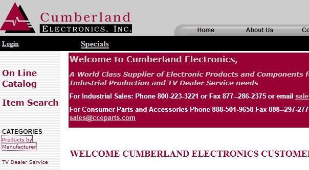 Found another electronics supplier from USA. Here is their history "Cumberland Electronics Inc. was founded in 1962 in Carlisle Pennsylvania, USA. Originally our business was TV parts, antennas and accessories. Near the end of the 1960’s we began to add more industrial based products such as switches, relays and connectors eventually leading to a department specializing in the industrial side of the business. In 1991 the employees completed a buyout of the company from the original founders, (in most cases when you talk to an employee of Cumberland you will be talking to one of the owners). During this period of time we have implemented state of the art, computer systems, warehousing and customer support systems."