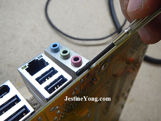 I took out the motherboard from the PC case and lift out the RAM and the CPU. The reason why I took out the CPU and RAM is that the possibility of electrostatic discharge until I work around the motherboard is high.