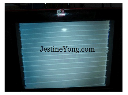 This TV came to me from one of my workmate, complaining that it has horizontal white lines on the screen. But he can still see the picture behind those white lines, and the picture is also faded. These were the information’s on the sticker from the manufacturer: