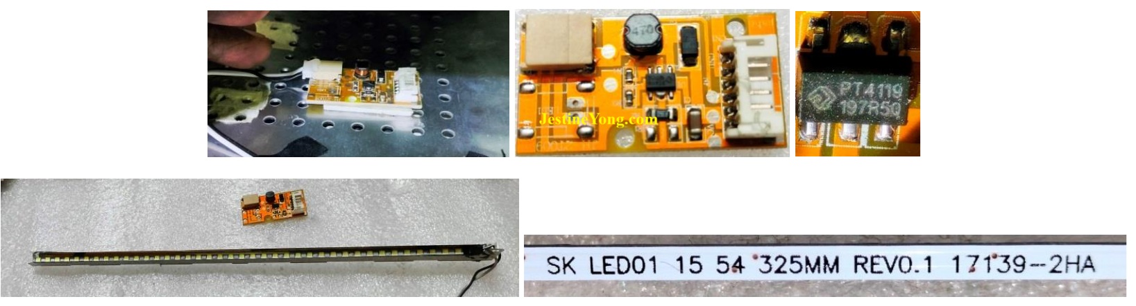 It was connected to an LED driver board that used a single IC (PT4119) which steps down the voltage and current suitable for the LED strip. The board was under the metal sheet. Let us have a look: