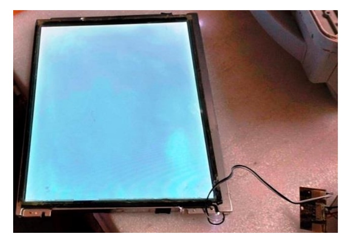 Instead of wasting time on the board, I replaced the board with a new one from my stock. Then re-inserted the LED strip and fixed with its screw and wired it to the new board keeping it at bottom corner for easy accessibility instead of pasting it on to the metal like how it was before. Then applied power and found the Panel brightly lit. I did not connect the LVDS cable at this time:
