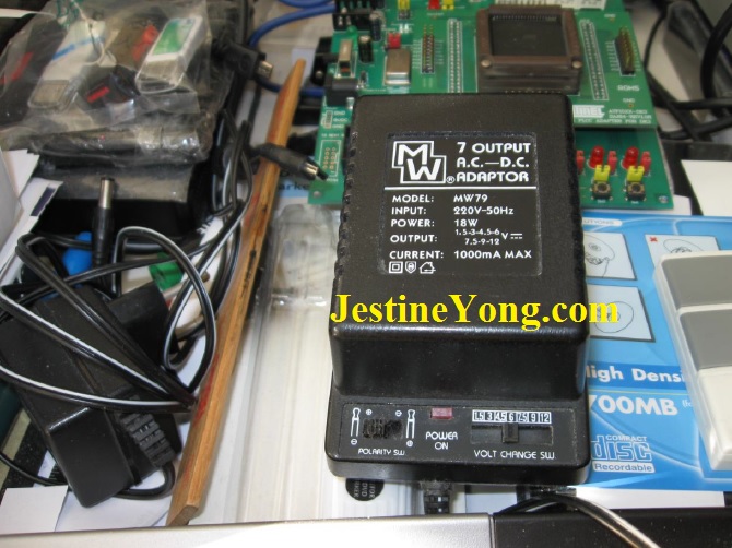 But I couldn’t have been more wrong! Although I used an original 6V 1A (18W_7 output 1.5-3-4.5-6-7.5-9-12V DC model MW79) adapter, it destroyed my quite expensive DY294 Tester within about a minute !! Because the LCD went dead after this. See next photo of my DC adapter that destroyed my DY294.
