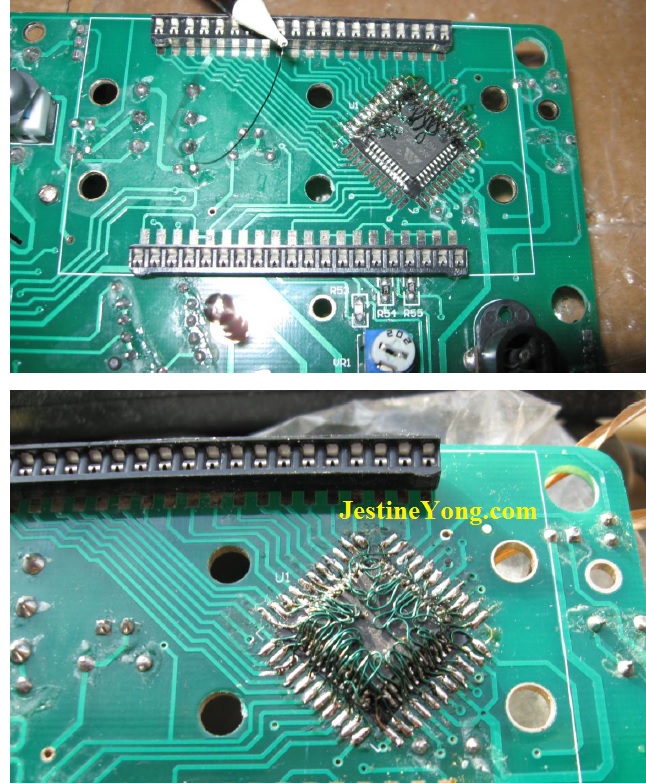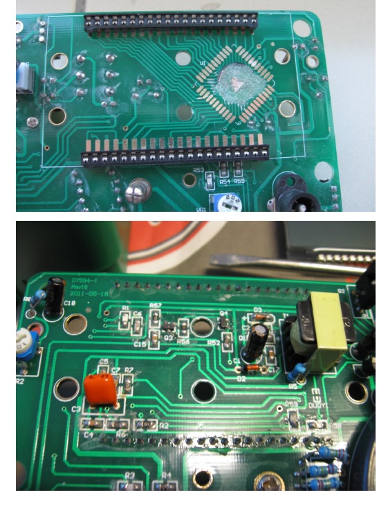 And if you abusively still do destroy your DY294, like I did, this article could be a great help to repair your device again too! But first check if 2SC9013/Q1 is still working before you remove your controller chip thinking it is destroyed. Next photos give you an idea the trouble I had to replace the removed chip by the pin compatible 44 pin AME7106 LCD controller!