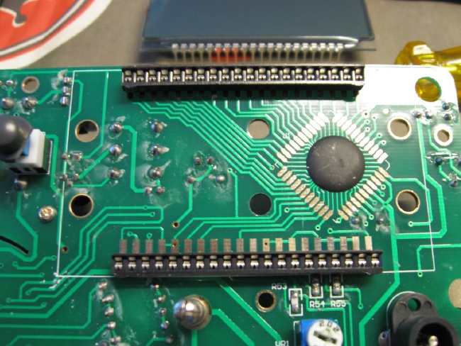 Previous Photo shows the back of the pcb with the back of the LCD connector and with a view on the (not overvoltage protected!) 6Volt DC input jack.