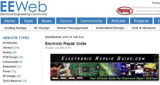 My website Electronic Repair Guide Is featured in EEWEB website for engineering site of the day (today). You may click on the link to check on the website. It has many other good electronics related stuff too.