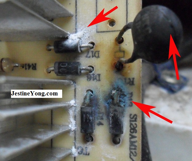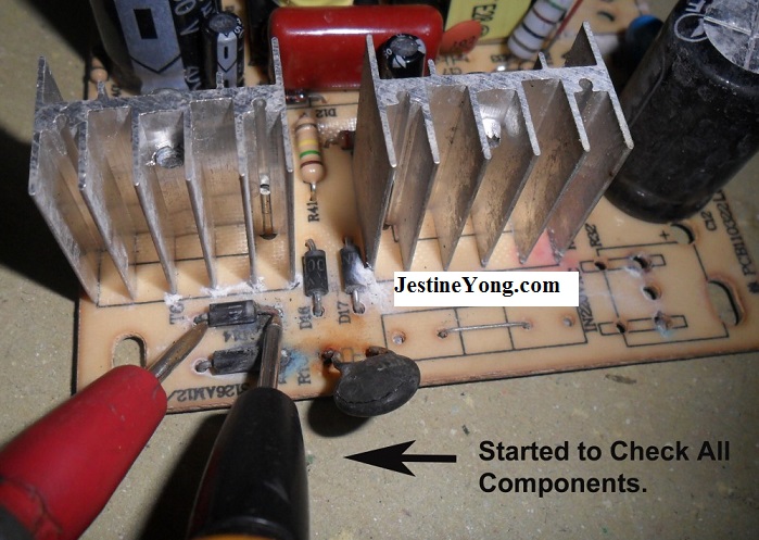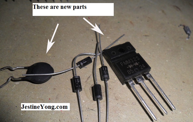 I started to check all the corresponding components in this area and found six components were bad. There were four shorted diodes, cracked NTC and a shorted Dual Schottky Barrier Rectifier. If you do not know how to test component, I suggest that you get Jestine Yong’s Testing Components Ebook HERE.