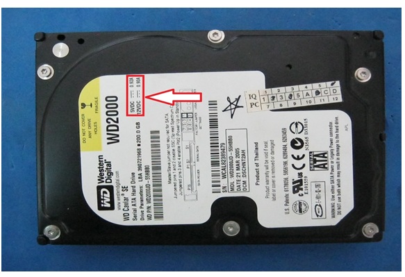 If you look at the arrow, you could see the voltage rating of this hard drive. It was 12 volts and just a little bit under 1 amp. I have used 12 and 1 amp transformer and the moment I powered up the hard drive, the fan started to spin. It was working fine.