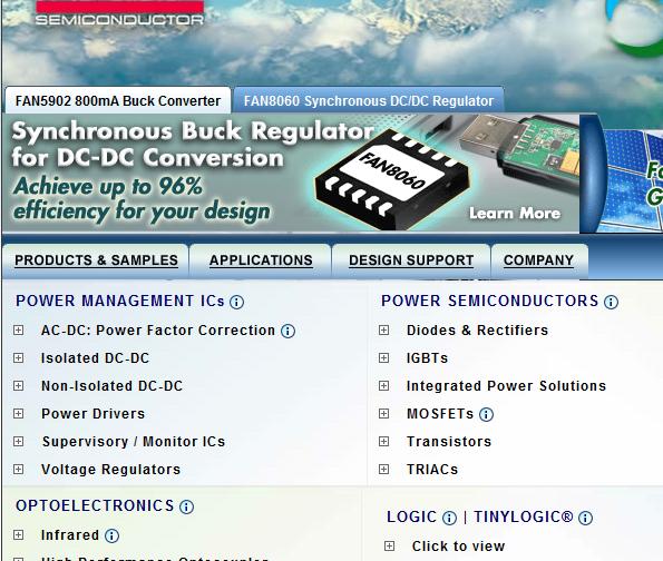 Please click on the photo to visit the Fairchild Semiconductor Website. In the website you could see lots of electronic components categories and if possible click on the Application link and read the latest news.