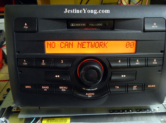 NO CAN NETWORK means does the radio is out of his vehicle and cannot communicate with the host ECU.The radio must be connected to the CAN BUS communication rail to the host computer in the car. If you try to put this type of car radio into another car, I mean into another Fiat Stilo than the radio will ask for a code.