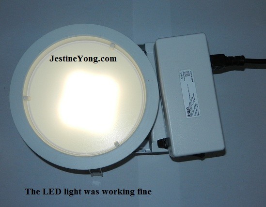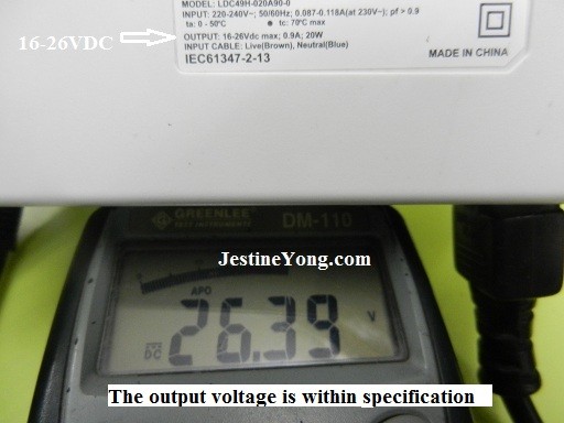 With this test, now I can remove the bulb and put in the main fuse without worrying that the power section or the semiconductors would blow again. From the photo you could see the output voltage measured 26.39 volt and the LED Floodlight happily lighted.