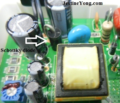 After done this repair work I began to check on another similar power adapter and found that there was only a shorted secondary diode. The part number was SR5150 rated at 5 ampere 150 volt as seen from the photo below.