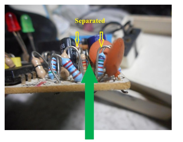 As you can see in the photo above there were two shorted-resistors, and both had no connection in the bottom side of the PCB. Both leads of these resistor were separated.