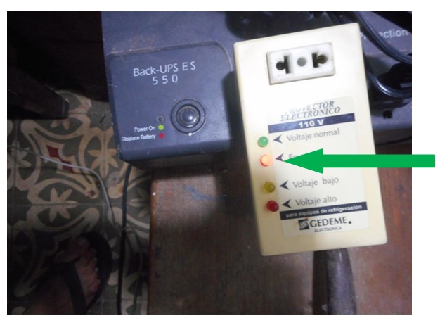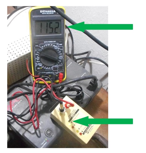 Now the green LED named Voltage normal (Normal Voltage) was on and the output voltage checked with the Digital Multimeter was 115. 2 volt. I´m used to check the output voltage (apart from Normal Voltage LED is lit) because the relay could be damaged and this way I´m sure there is voltage in the output.