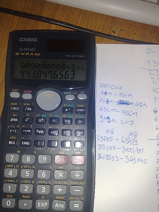 Now that I had numbers I had to make partitions. I used linux from hirens cd for this task, but you can do it from dos or windows as well.