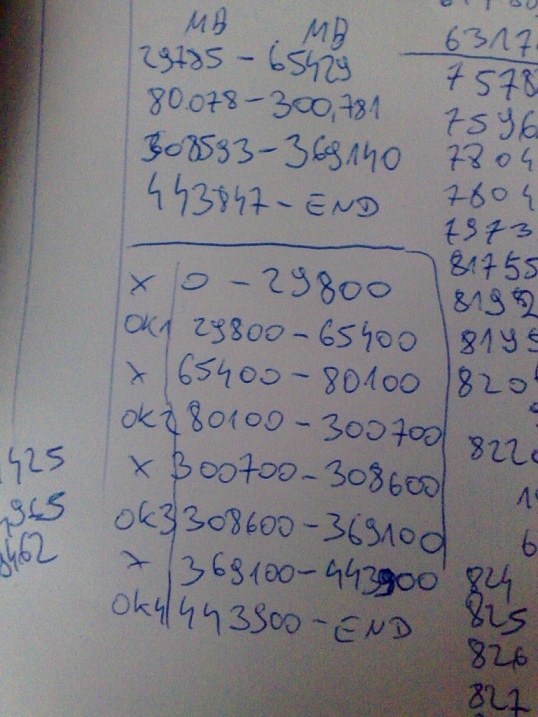 Making a bit of fine tuning to numbers. Add a bit to the beginning and end of bad areas. I rounded them all on 100mb.