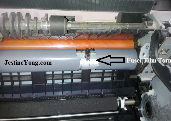 A friend gave me this printer to fix it. The complaint of this printer was fuser fixing film broken- see the photo below: