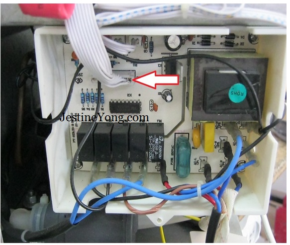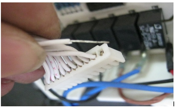 The first thing that I usually check is the cables; so I started wiggling with these wires and the moment I moved the white cable the machine came on. I checked the cable and it looked fine. The moment I put the white cover back on, the machine stopped working. It seems like the white cover was pushing these wires causing them to fail to deliver power to the machine. At this point I knew that the cause of the problem in this machine is due to this cable and I have to check it further.