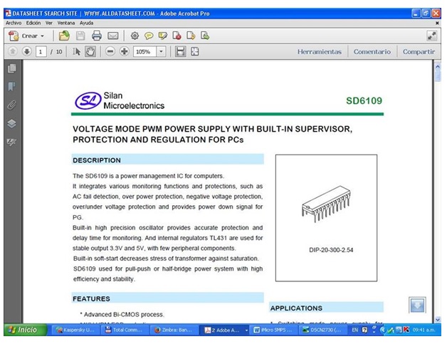 The part number was SD6109 (Voltage mode PWM Power Supply with built-in supervisor, protection and regulation for PCs).
