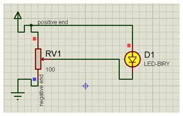 - Attach the LED’s positive terminal to the end of the pencil lead connected to positive terminal of voltage source and connect LED’s negative terminal somewhere in between the two ends of the pencil lead. Now as the negative terminal of LED slides away from positive terminal of lead using alligator clip, its brightness rises as the voltage drop across it increases.