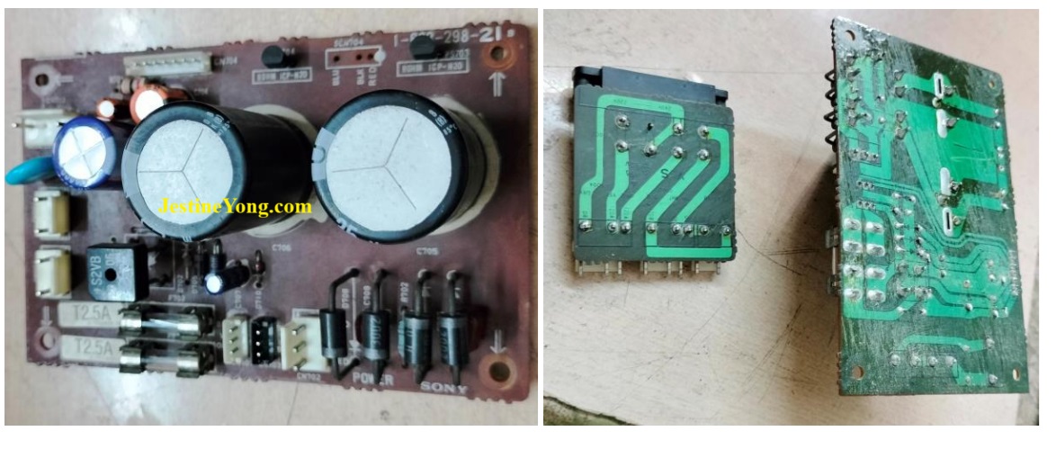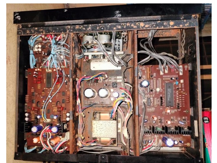 Checked and found it to be true. First of all I downloaded its service manual from the net to make things easy. I opened this lovely Deck, which was almost clean inside except for settled fine dust on the boards. As per practice, the first investigation began from the power supply board. Let us have a look at the inside of this well designed deck which can be viewed from both sides after removing the covers. The boards are fit in a metal frame in the centre.
