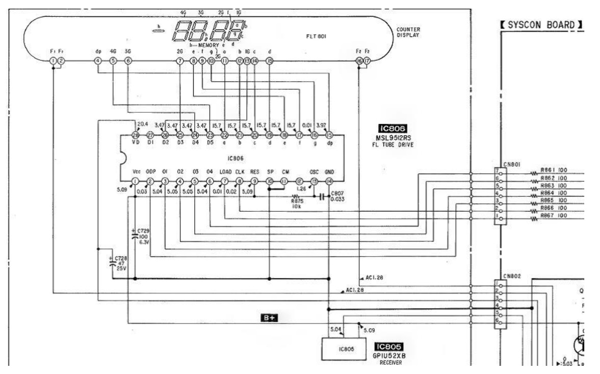 Not being able to replace the suspected counter display driver ic is something to be expected as these chips are never standardized components. And even if they were available it still would drive these old in time deteriorating gass tube counter displays. So luckily it was not a big issue for the customer here.