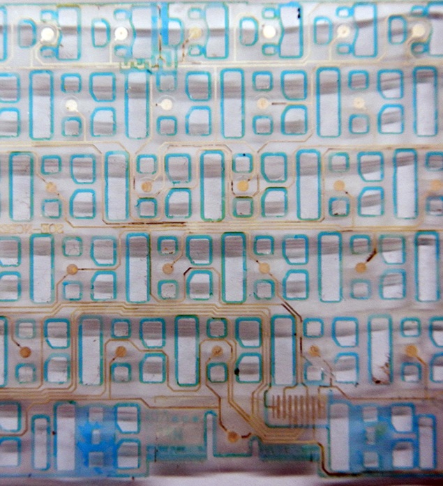 All of that dark coloring in the wiring is corrosion, as cancer in human body.  This is why the keys are not working correctly or they stops working after a time. No cleaning with water, alcohol, ultrasonic cleaning will help to solve this problem.