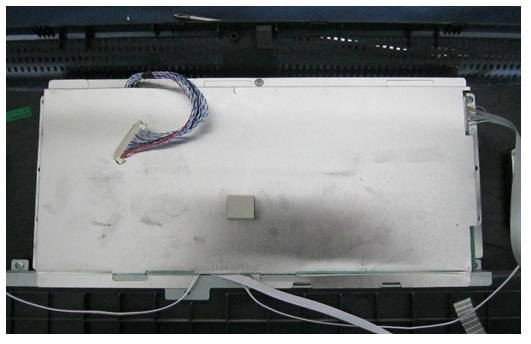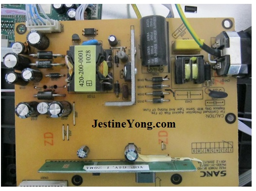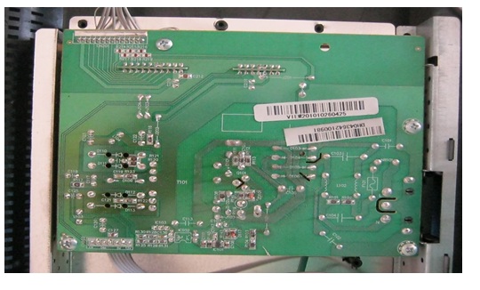 Here is the power board and you can see the socket that feeds the power to the LED lights. The moment I took this board off and looked to the other side of it, this is what I saw.
